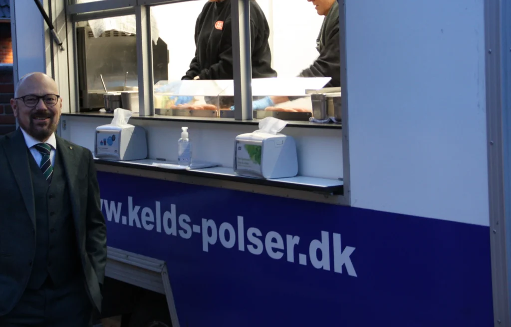 Vi havde selvfølgelig besøg af Kelds pølser igen i år og selvfølgelig dertil hørende Slots øl. Dette gav igen anledning til et lille smil på læben hos de fleste, men allermest direktøren.